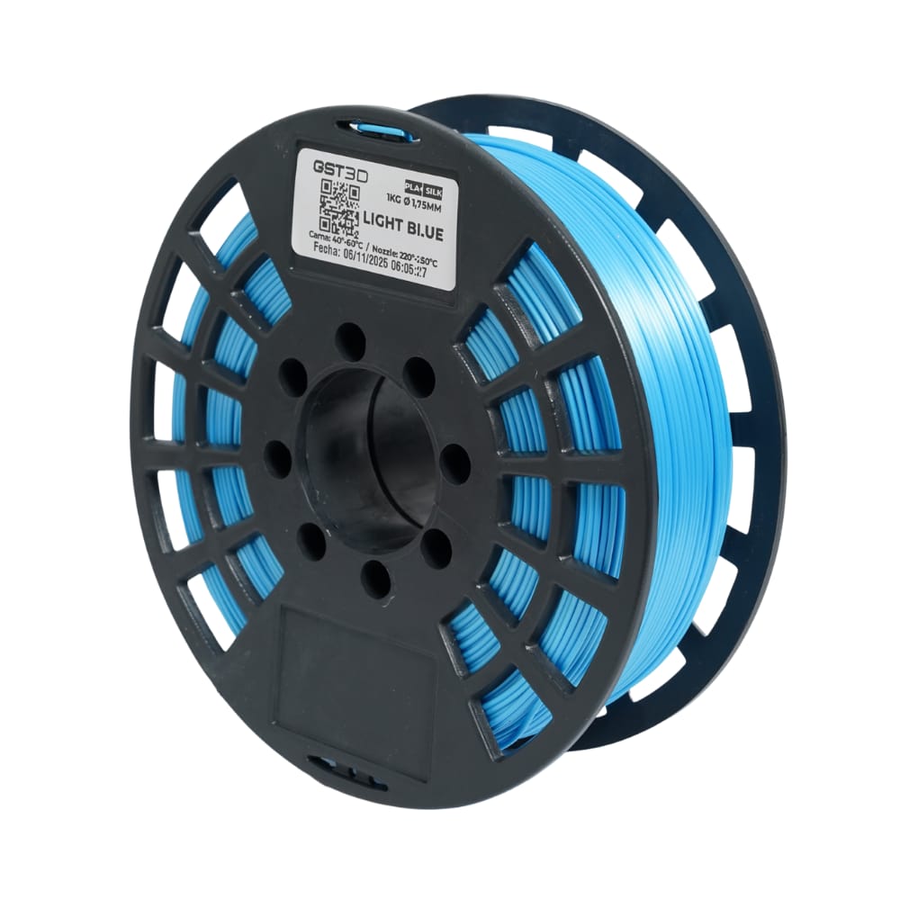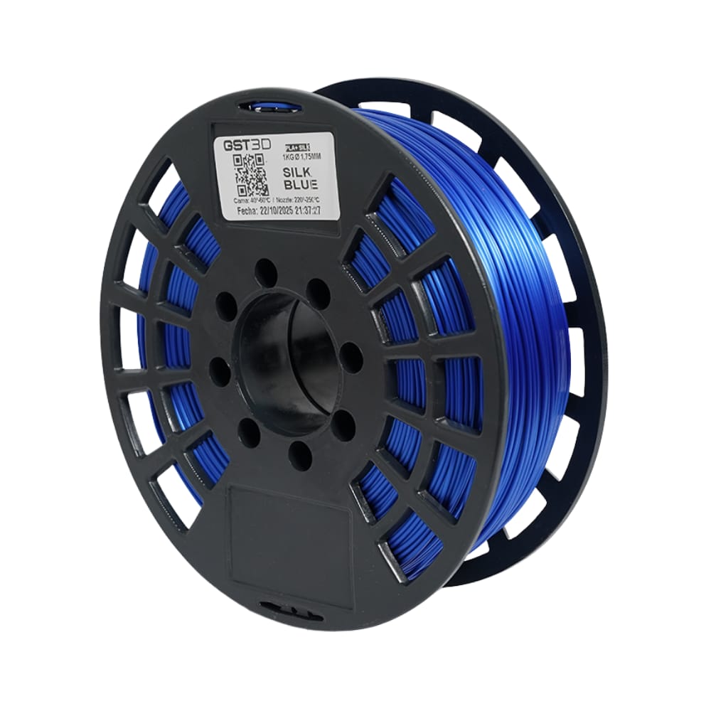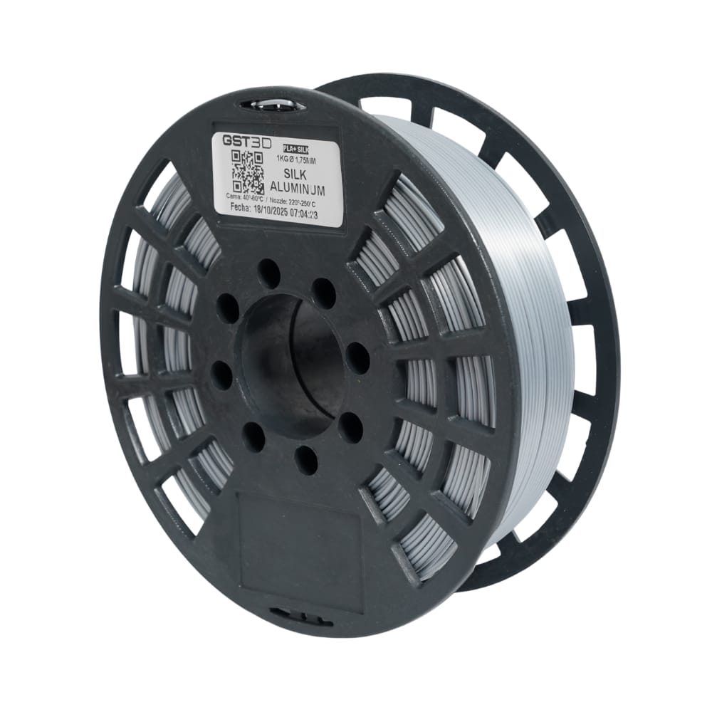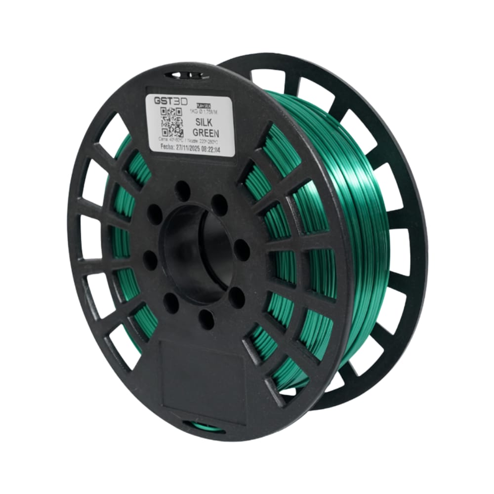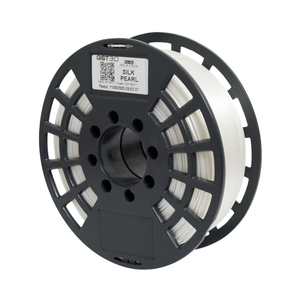 Filamento PLA con acabado satinado tipo seda, ideal para piezas con brillo suave y apariencia premium.