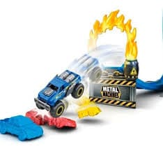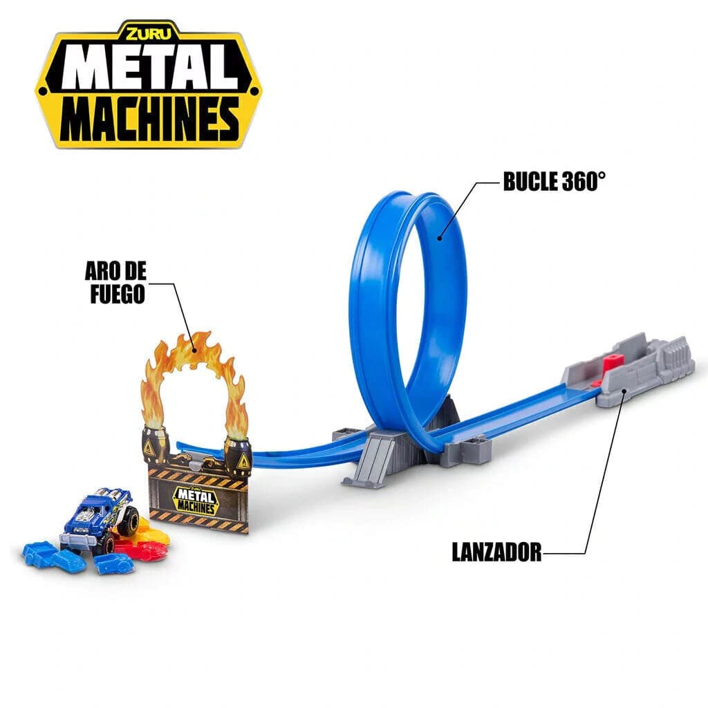 Con pistas resistentes, curvas dinámicas y un loop de 360°, podés competir solo o retar a tus amigos para ver quién logra la vuelta perfecta sin descarrilar. Compatible con los autos Metal Machines, es ideal para ampliar tu colección y crear combinaciones épicas de pistas.