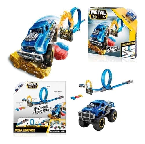 Sentí la velocidad al máximo con el circuito Metal Machines Road Rampage – Una Vuelta. Diseñado para fanáticos de las carreras y la adrenalina, este set te permite lanzar tu auto a toda potencia, completar el loop y desafiar la gravedad en cada pasada.