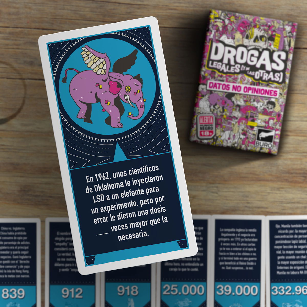 En DATOS NO OPINIONES cada carta tiene preguntas con datos curiosos, bizarros, oscuros, cómicos y/o tristes de un tema en particular, cuya respuesta es un numero.