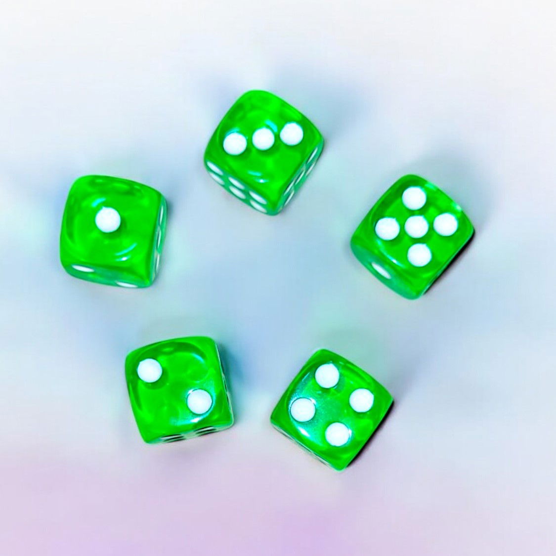 Crea momentos inolvidables con nuestro set de 5 dados de 6 lados transparentes en color verde
