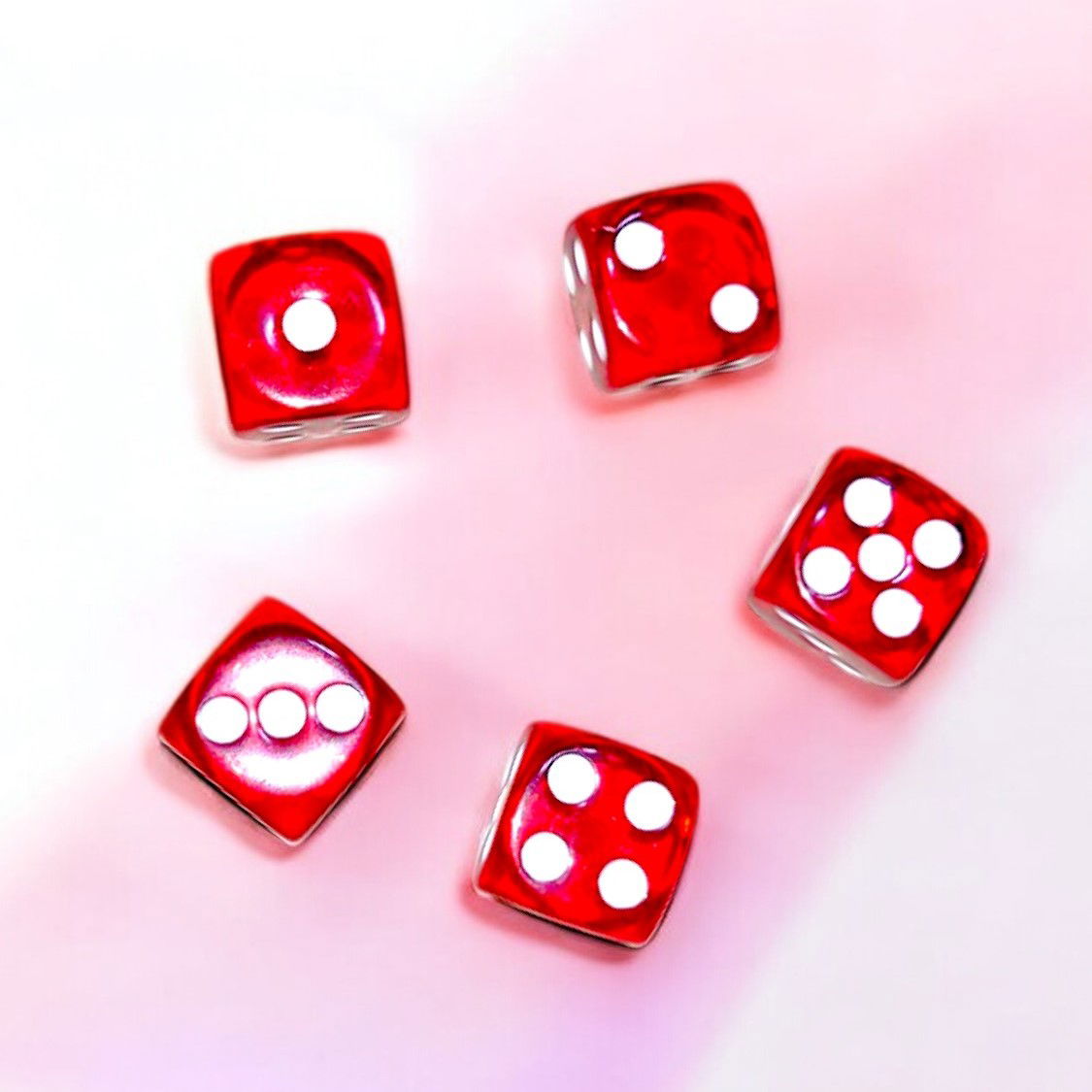 Crea momentos inolvidables con nuestro set de 5 dados de 6 lados transparentes en color rojo