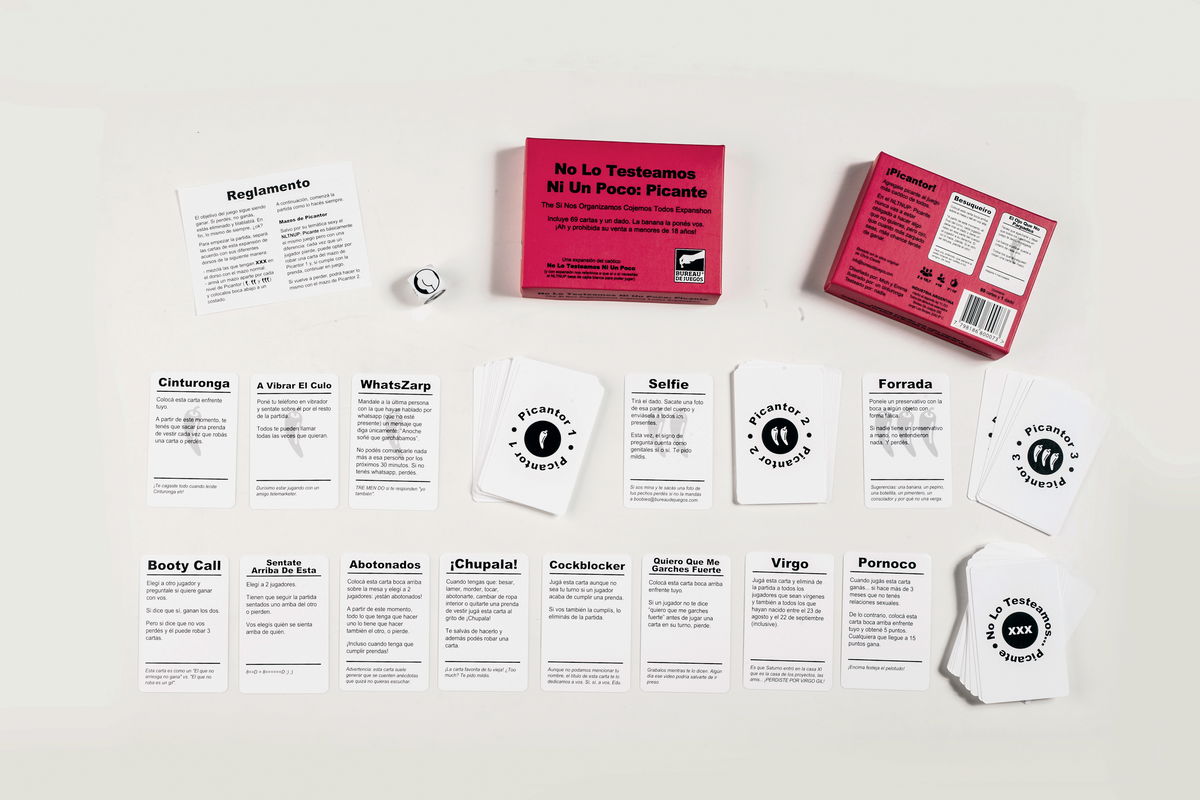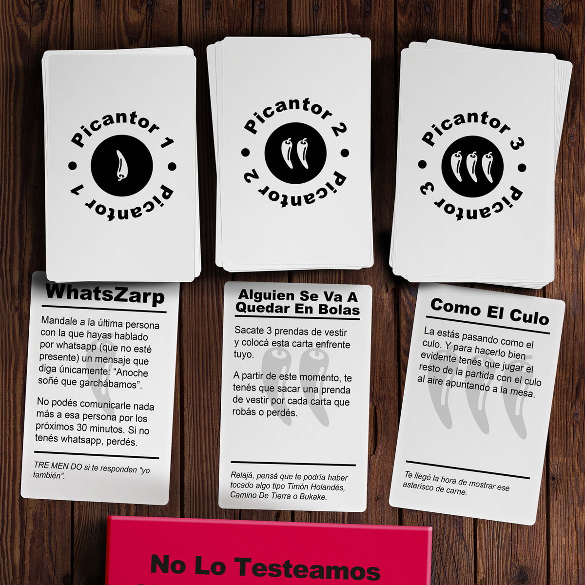 Disfruta de la nueva expansión "Picante" de "No lo testeamos ni un poco", con cartas picantes y desafíos provocativos.